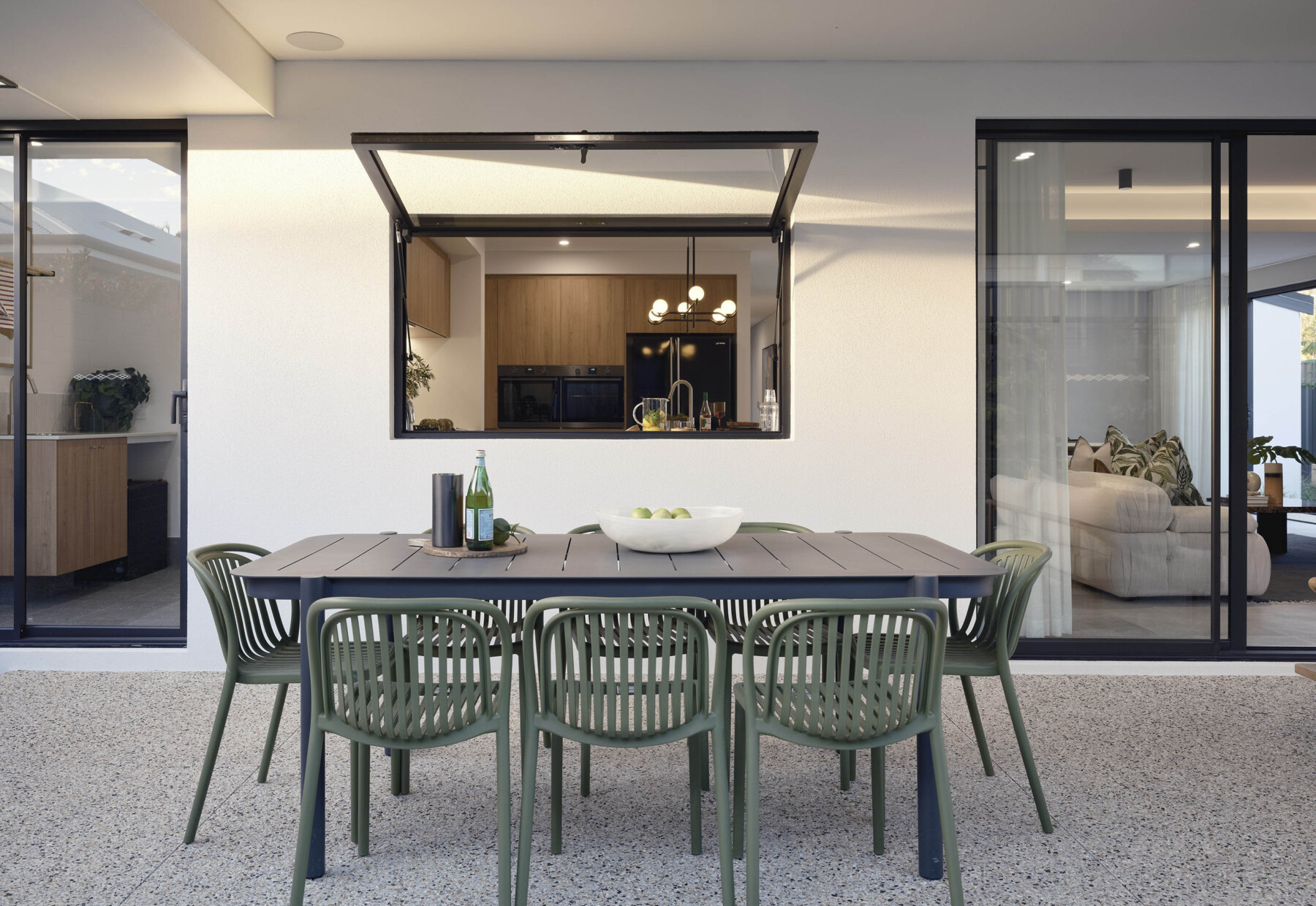 Your outdoor space shouldn’t be limited to the warmer months only. There’s different ways you can harness Perth’s climate than just a simple alfresco. Consider things such as a bifold servery window; which allows the space to feel naturally connected to the outdoors while remaining comfortably inside, making it easy to interact with family and friends while entertaining and preparing food. It also provides a clear view of the outdoor area, allowing you to keep an eye on the children too while working in the kitchen.