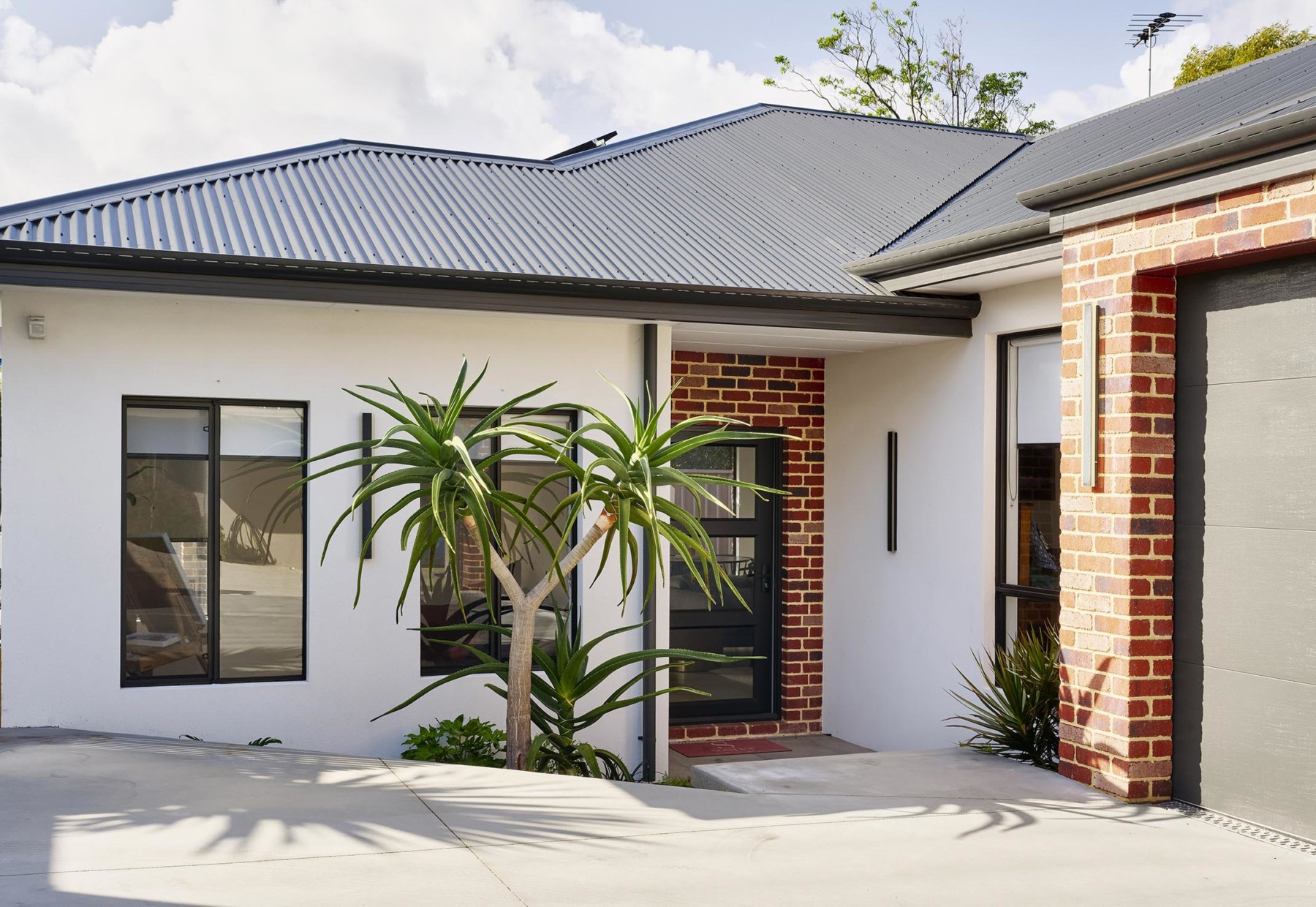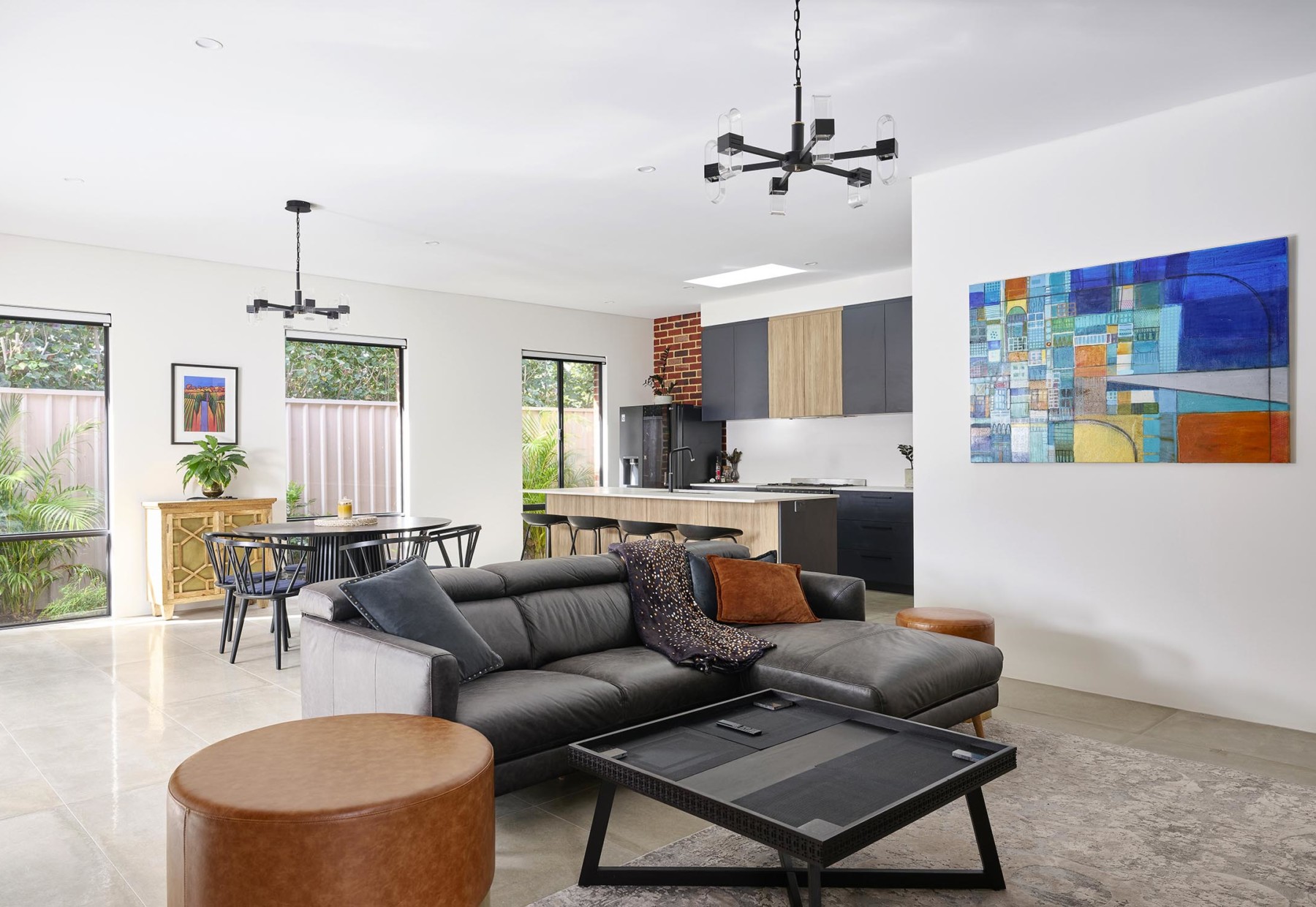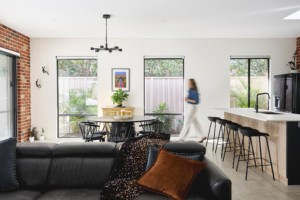 Sonja had a clear vision of her dream house, knowing exactly how she wanted her forever home to look: “My theme for this home was ‘industrial art house’. I was seeking high-ceilings and character to go alongside pieces of art I have either painted, or collected over the years. I knew exactly what I wanted, so the selection process was easy. I wanted to achieve a homely-aged feel with exposed recycled-look brick as a main feature.”, explains Sonja.