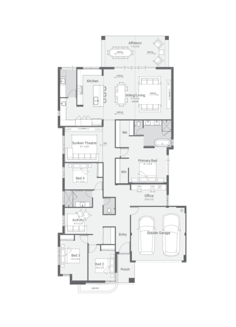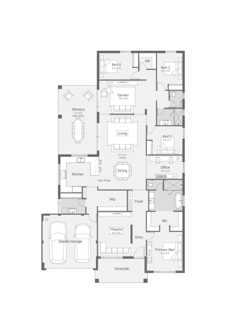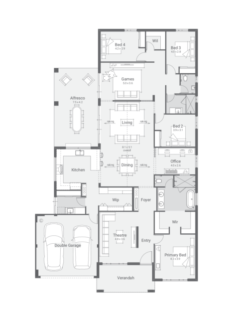 Movie nights come to life in the theatre, while the generous games room can shift with your needs – from a kids’ play space to a home office, hobby room or quiet retreat. At the back of the home, children or guests can enjoy their own peaceful area, giving everyone space to unwind in their own way.