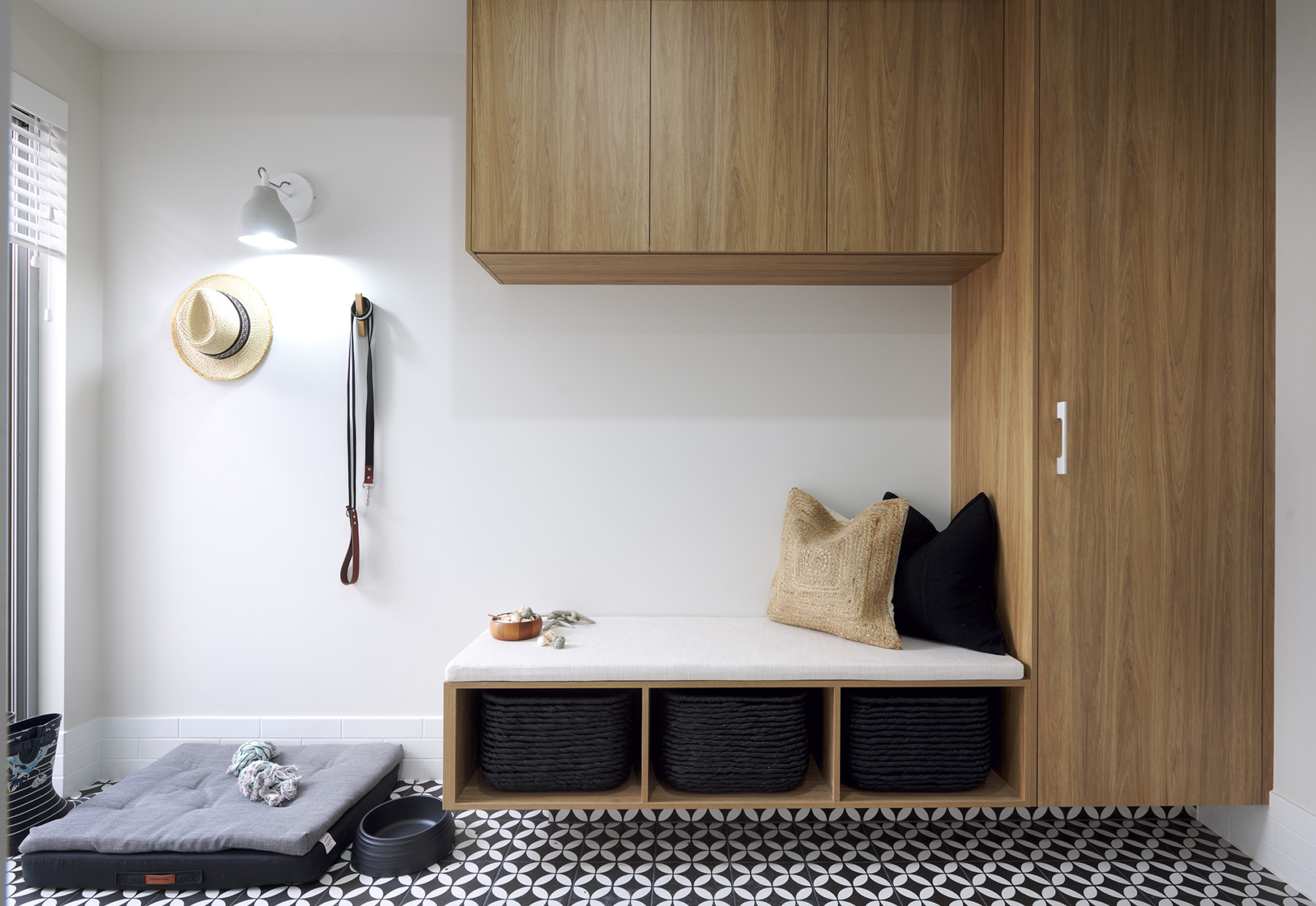 What you decide to include in your laundry usually comes down to who lives in your home and how big your block is. A European-style laundry, or a laundry tucked away within a cupboard, works well as part of a compact home design for a young couple, for example. Families with more space to play with on their block often like to include room in the laundry for jackets, sports kit and school bags, while pet-owners look to include storage for pet food and water bowls, and maybe even a dog washing station, kennel or pet bed. As a result, we’re seeing growing demand for laundries with adjoining mudrooms as this really increases the functionality.