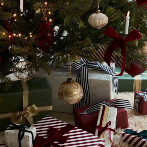 Let your creative side shine by crafting your own holiday decorations! Dive into DIY projects to design handmade ornaments, personalise stockings with names, or craft festive centrepieces that reflect your unique style. Not only is it a fun family activity, but these homemade touches infuse your décor with a special charm that store-bought items simply can’t match. We love the use of filling a glass vase with your leftover ornaments, a cost-efficient but aesthetically pleasing way to inject that festive feel to your tables.